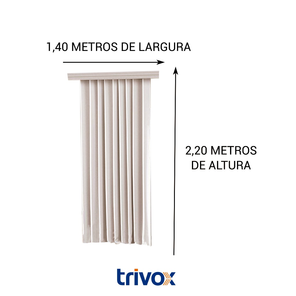 CORTINA BLACKOUT PVC CORTA LUZ COM RODIZIO PARA TRILHO 1,40 MTS DE LARGURA X 2,20 MTS DE ALTURA - VEDA 100% A LUMINOSIDADE. A Cortina Corta Luz Blackout impede a passagem de luz e raios ultra violeta preservando assim o piso e os móveis do envelhecimento na sua casa. Ideal também para escurecer seu quarto ou sala e manter a temperatura. O PVC é um tipo de plástico especialmente feito para cortinas, possuí uma textura na frente para imitar um tecido e pode ser da cor desejada pelo cliente. A parte de trás do PVC é da cor cinza, conforme mostramos na foto explicativa, esta parte que bloqueia 100 % a luz, não deixando a luminosidade passar. - PROTEÇÃO DO SOL - AUXILIA O AR CONDICIONADO A REGULAR A TEMPERATURA, REDUZINDO CONSUMO DE ENERGIA - AMBIENTE AGRADÁVEL - DECORATIVO CONTEÚDO DA EMBALAGEM: - 1 Cortina com tamanho de 1,40 mts de largura x 2,20 mts de altura - Indicada para trilho convencional - A cortina vai com rodízios para trilho comum, conforme as fotos no anúncio (* Não acompanha suporte, trilho ou varão) CORES DISPONÍVEIS: - Branco - Bege COMPOSIÇÃO : 100% Policloreto de Vinila (PVC) INSTRUÇÕES DE LAVAGEM: - Lavar a mão (não usar máquina de lavar) - Não utilizar alvejantes a base de cloro - Não utilizar secadora - Não passar ferro - Não limpar a seco - Secar à sombra
