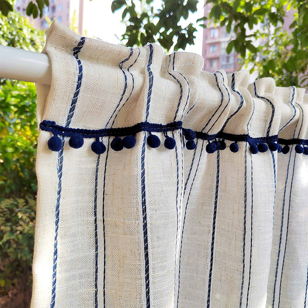 Cortina Curta Listrada Vertical Para Cozinha Boho Sheer Valance Tier Com Pompom Linho Fazenda Divisória De Porta Deslizante Café Banheiro Tratamento De Janela 1 Painel