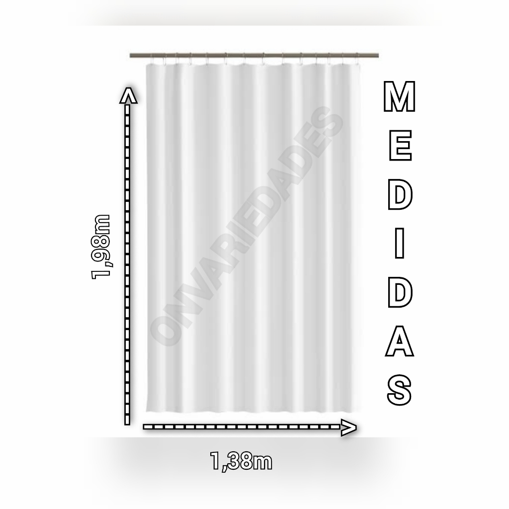 Cortina de Banheiro Box Luxo Tecido Poliéster Lavável Antimofo com Ganchos 1,38m x 1,98m Provador