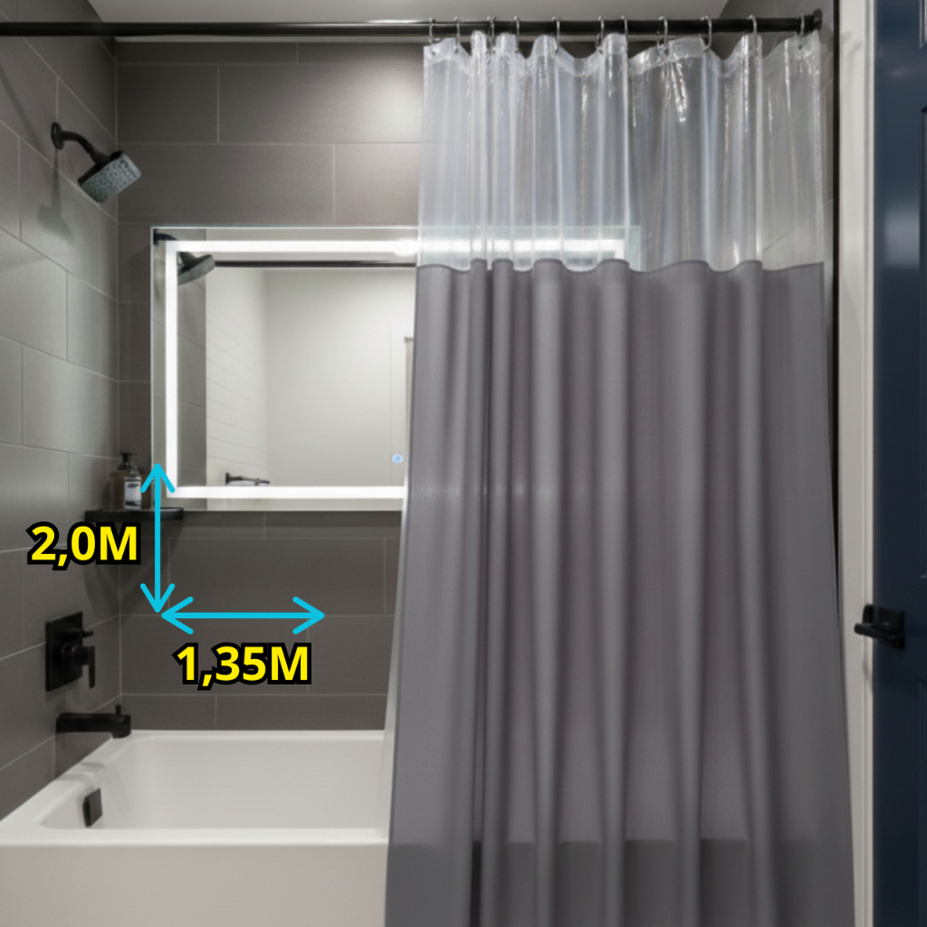 ⚠️ IMPORTANTE: Antes de finalizar sua compra, confirme se o endereço de entrega está correto para evitar possíveis atrasos ou devoluções. 🛁 Deixe seu banheiro mais bonito e funcional! Com nossa cortina de box em vinil 100% impermeável, você garante proteção contra respingos, facilidade na limpeza e um acabamento moderno para o ambiente. Feita com material resistente e flexível, ela é perfeita para o dia a dia, unindo praticidade e durabilidade. 📐 Medidas: • Altura: 2,00 m • Largura: 1,35 m 💧 Vantagens do produto: ✅ Instalação rápida e fácil — compatível com varão de box (não incluso) ✅ Material de alta qualidade — vinil resistente, leve e flexível ✅ Limpeza descomplicada — pode ser lavada com pano úmido ou água e sabão ✅ Protege e organiza — evita que a água se espalhe e mantém o banheiro sempre seco.