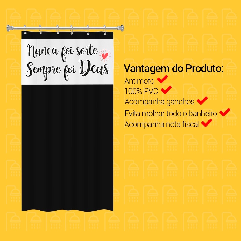 | Cortina de Box Banheiro PVC com Visor Frase Deus Decorativa e Ganch... este produto | R$ 54,69 | — | 4.8/5 | 6 |
