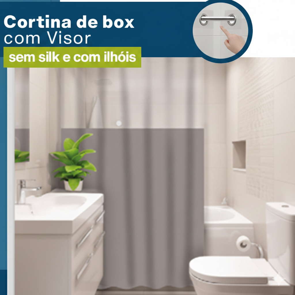 🚿 CORTINA DE BOX COM VISOR TRANSPARENTE VARIAS CORES – PVC 100% 💎 Mais praticidade e estilo para seu banheiro! Transforme seu banheiro com essa cortina de box moderna e funcional! Além de proteger contra respingos, o visor transparente deixa o ambiente mais claro e bonito. Ideal para quem quer organização sem perder o visual elegante. ✅ Características: ✔️ Material PVC 100% – resistente e durável ✔️ Protege contra respingos e umidade ✔️ Ajuda a evitar mofo ✔️ Visor transparente – entra mais luz no box ✔️ Ilhós para instalação fácil (varão não incluso) 📏 Medidas: • 1,38m de largura x 1,98m de altura • Ideal para box de 80 a 90cm • Conteúdo: 1 cortina de box