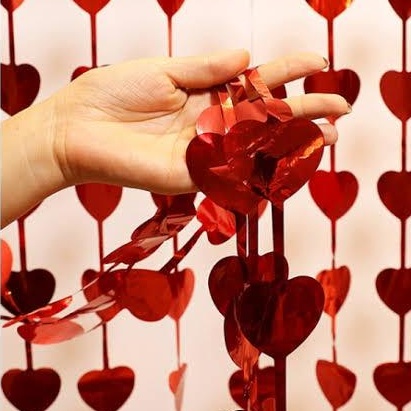 Cortina De Coração Papel Metalizado Vermelho