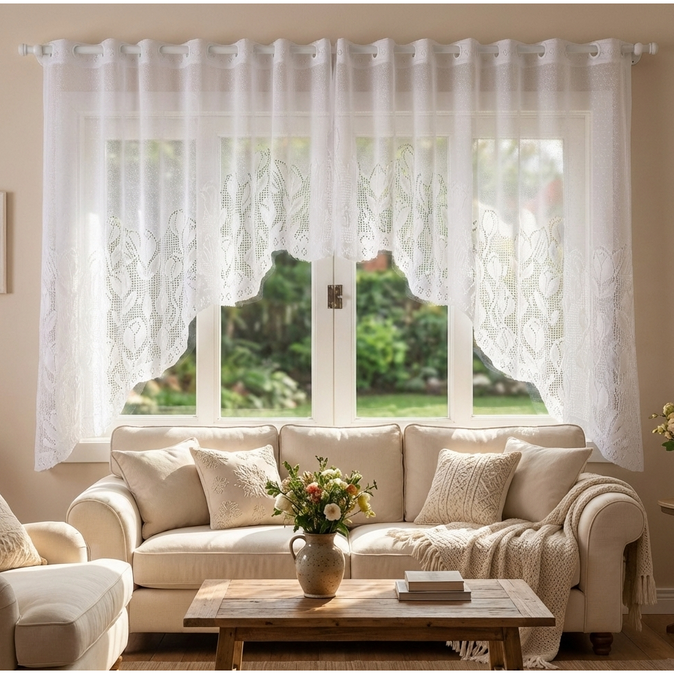Cortina de Cozinha Cascata Renda 3,20x1,10 Branca Decorativa para Janela Sala Quarto
