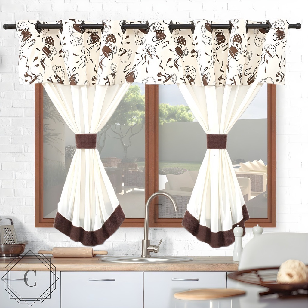 Cortina De Cozinha Janela Casa Promoção 2,60m X 1,40m Para Varao Simples com Argola - Tecido Oxford