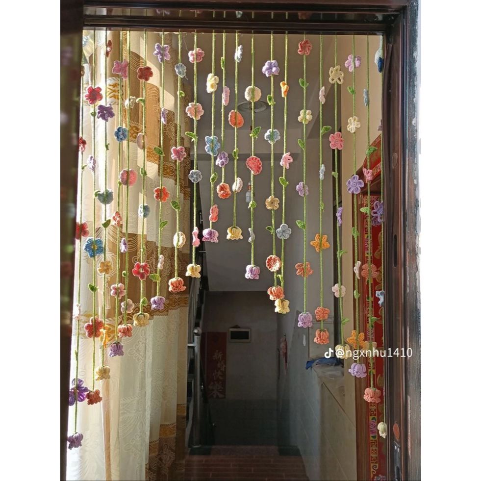 Cortina de crochê com flores