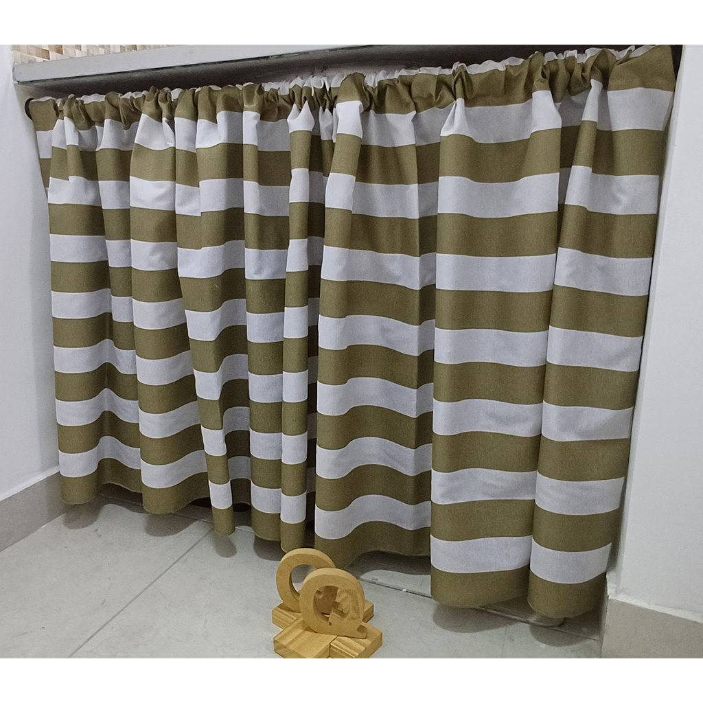 Cortina de Pia para Cozinha Tecido Listrado Bege e Branco 1.50 X 0.80 Decoração luxo