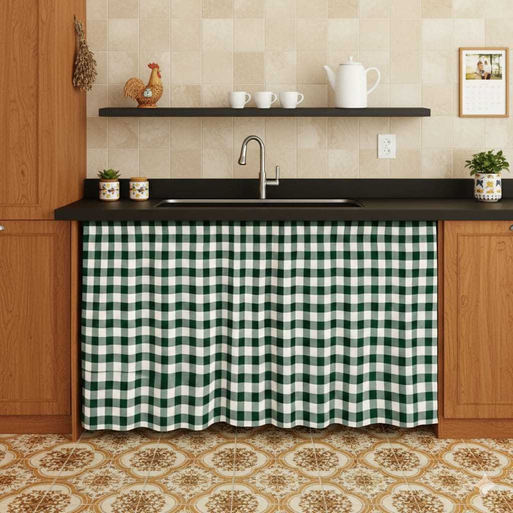 Cortina de Pia Verde Xadrez 0,80x1,40 Oxford CortininhaCozinha Decorativa – Elegância e Praticidade