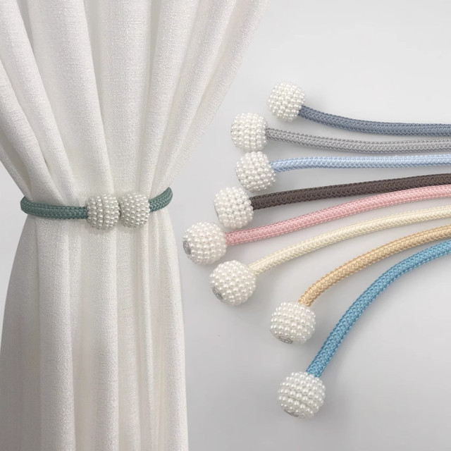 Cortina De Tecido Magnético Com Fivela De Corda De Pérola De Imitação Sem Perfuração De Volta Clip Cortina Cozinha Curta