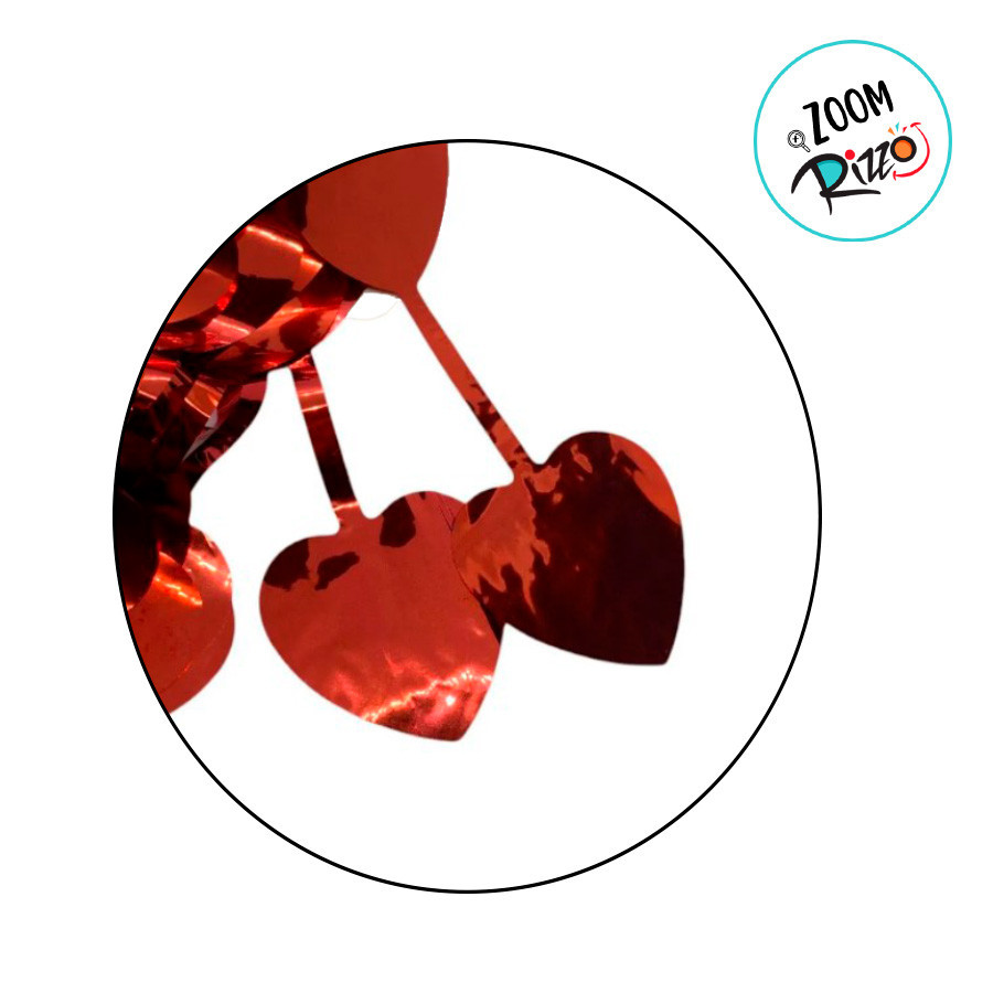 Cortina Decorativa Painel Mágico - Corações Vermelho Metalizado - 1x2m - 1 unidade - Rizzo