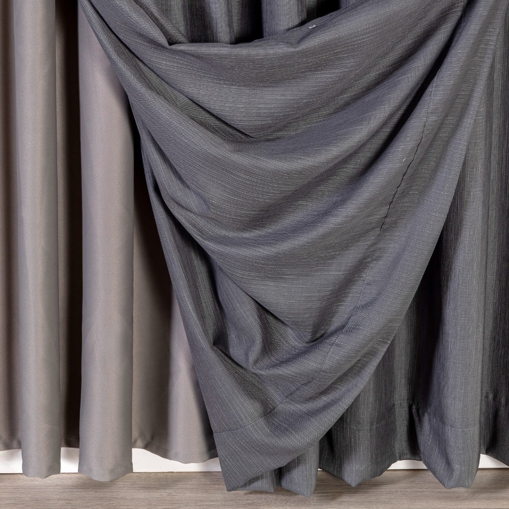 Cortina gaze de linho flame com forro blackout 10M DE LARGURA X ALTURA ESCOLHIDA NA VARIAÇÃO DUAS PARTES DE: 5M X ALTURA ESCOLHIDA NA VARIAÇÃO Composição: voil de linho Composição: blackout em tecido poliéster vedação de até 85% ILHOSES/ ARGOLAS: cromadas Barra da cortina: 10cm