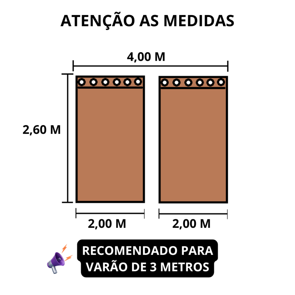 Cortina tecido Jacquard O tecido Jacquard é um tecido acetinado, com um brilho discreto, que apresenta em sua superfície um relevo delicado e desenhado. Usado para realçar a beleza do seu ambiente. Contém: 01 Cortina 4,00m x 2,60m no total. sendo: 02 Partes de 4,00 metros de tecido esticado x 2,50 de altura. ILHÓS COM IMBUIA (MARROM ESCURO) Indicada para varão de 2 a 3 metros. Serve tanto para varão grosso de 28 mm quanto o fino de19 mm Não acompanha varão Composição: 100% Poliéster Variações na cores: as fotos dos produtos possuem leve edição para ressaltar as cores, portanto podem apresentar uma pequena variação de cor . Além disso , cada tela (monitor ou celular) possui uma calibragem diferente , o que altera a percepção de cores, lembre sempre de tirar todas as suas dúvidas no chat antes de fechar o pedido. ATENÇÃO :Pode ocorrer variações na estampa do tecido