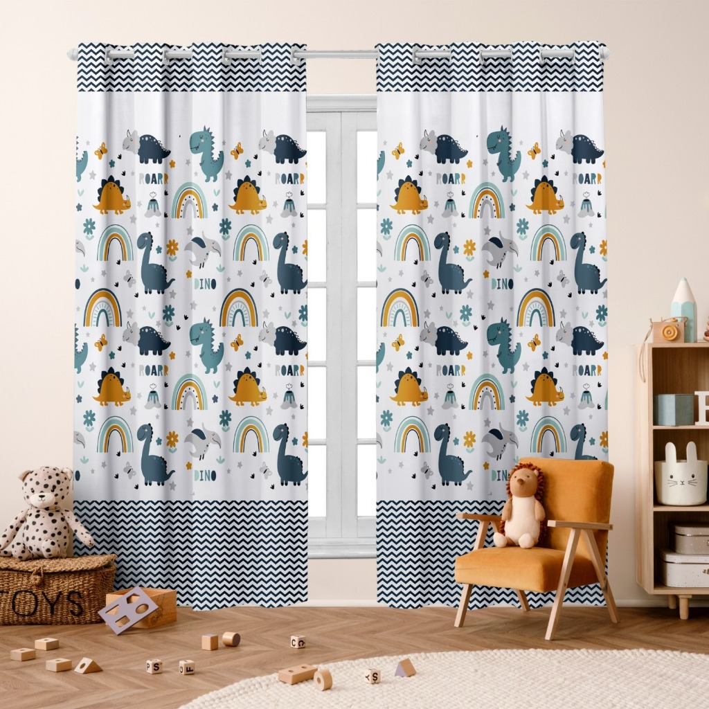 Cortina Infantil DINOS 3,00X2,20 Decoração Quarto Baby Dinossauros Estampado Kids Baby