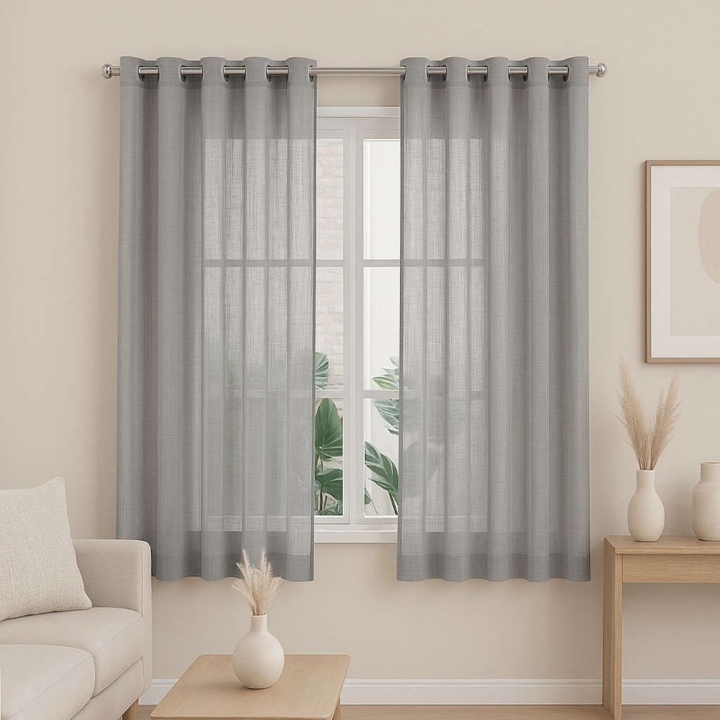 Cortina Linho Voil Flame Gaze com Ilhós | 2,00m (L) x 1,70m (A) | Tecido Fino e Transparente | 100% Poliéster Renove sua decoração com leveza e elegância! A Cortina Linho Voil Flame Gaze com Ilhós é perfeita para quem deseja um ambiente iluminado, moderno e sofisticado, com o toque delicado do tecido translúcido e a praticidade do ilhós cromado. Ideal para salas, quartos, cozinhas e escritórios. Destaques do Produto: Tecido fino, leve e com transparência Proporciona ambientes claros e elegantes Com ilhós cromado quadrado, ideal para varões de até 28mm Sem forro e sem bloqueio de luz – estilo clean e moderno Fácil instalação e ótimo caimento Informações Técnicas: Medidas totais (esticadas): 2,00m (largura) x 1,70m (altura) Dividida em 2 partes iguais: 1,00m (largura) x 1,70m (altura) cada Altura de 1,70m – não chega ao chão, ideal para janelas ou espaços com móveis Recomendado para varões de até 1,00 metro de comprimento, garantindo bom franzimento Acabamento em bainha Conteúdo da Embalagem: 1 Cortina de Linho Voil Flame Gaze com Ilhós Medidas totais: 2,00m (largura) x 1,70m (altura) NÃO acompanha varão Observações Importantes: Produto sem forro Não bloqueia a claridade – tecido transparente Foto meramente ilustrativa: a tonalidade da cortina pode variar de acordo com o lote do tecido ou configuração do seu monitor Verifique as medidas do local antes de efetuar a compra cortina voil, cortina com ilhós pequena, cortina curta, cortina 2 metros largura, cortina 1,70m altura, cortina janela elegante, cortina linho poliéster, cortina transparente para sala ou quarto