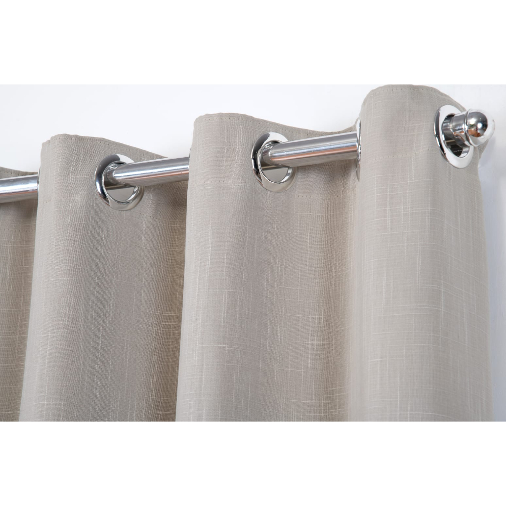 Cortina de linho gaze com forro em tecido blackout para janela medindo 2.50 metros de largura por 1.70 de altura. ( medida da cortina esticada ) Dividida em duas partes de 1.25 metros cada. Cortina com ótimo caimento. Tecido 100% poliéster. Acabamento com ilhós redondo cromado. Cortina indicada para varão de 18 a 28 mm. ( Não acompanha o varão ) Bloqueia em média 80% da claridade, essa taxa de bloqueio pode variar para mais ou menos de acordo como ambiente em que será instalada. Observação: Essa medida de cortina serve apenas para varão de até 2.00 metros.