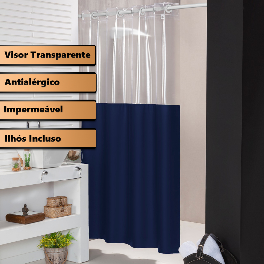 Cortina Para Box Banheiro Antimofo Impermeavel Com Visor