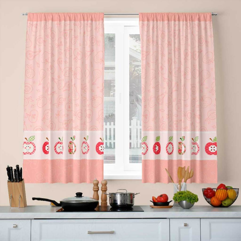 Cortina para Cozinha passa varão 2.00m x 1.36m Decorativa 100% Poliéster Pera Maça