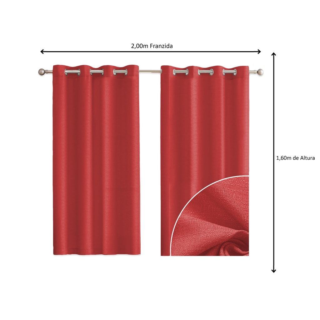 Cortina para Janela linda Rústica Texturizada 3 metros largura X 1,60 Vermelha