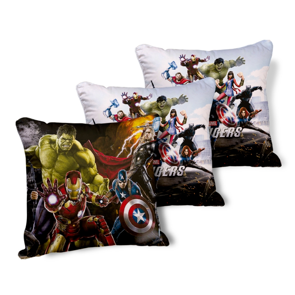 Cortina Para Quarto Infantil Criança Menino Vingadores 3.00 X 2.20 E Trio Capas de Almofadas