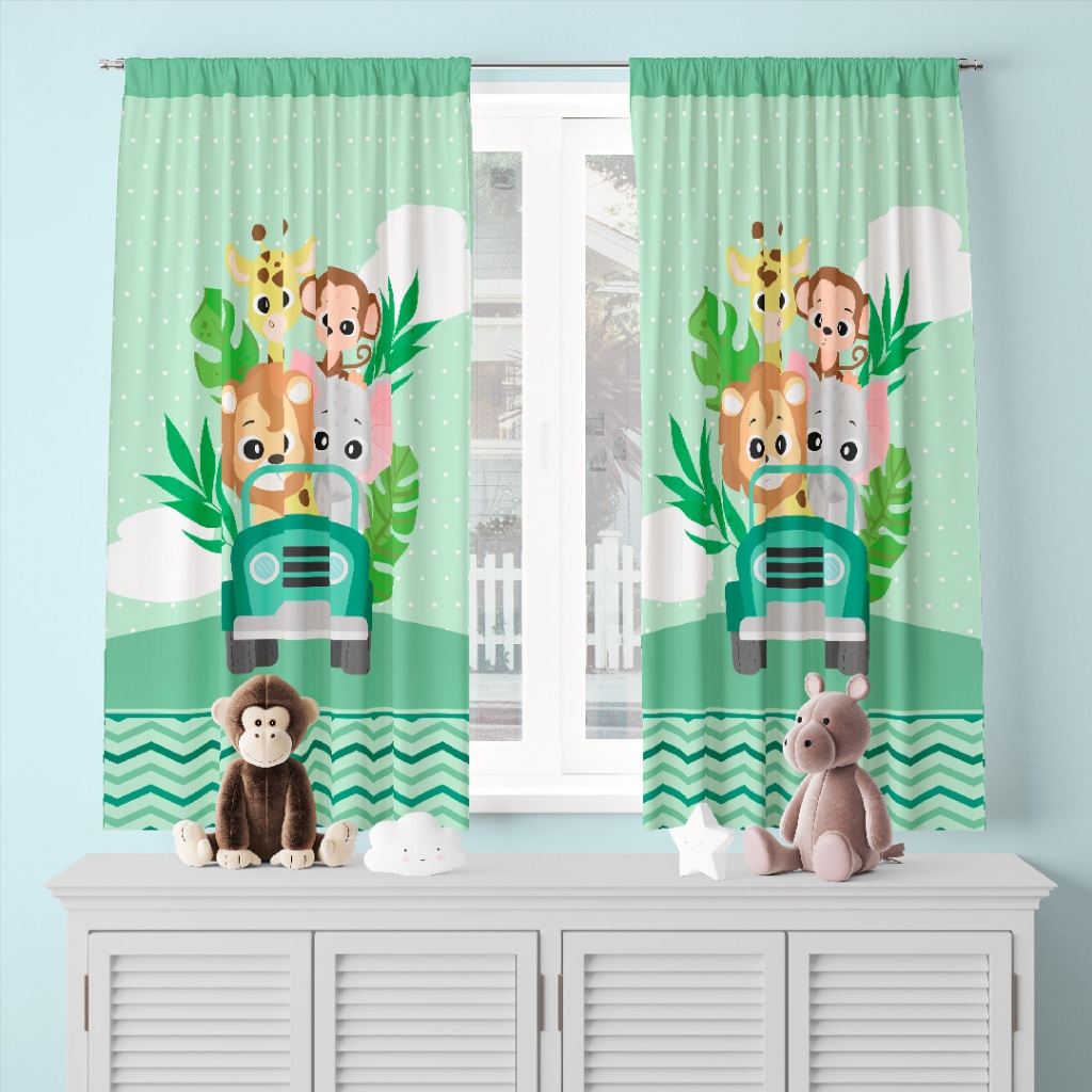 Cortina para Quarto Infantil passa varão 2.00m x 1.36m Decorativa 100% Poliéster Dinos