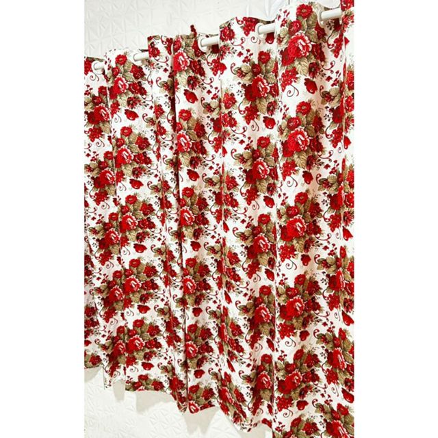 CORTINA PARA QUARTO OU COZINHA FLOR VERMELHA 2,00X1,30 TODA ESTAMPADA