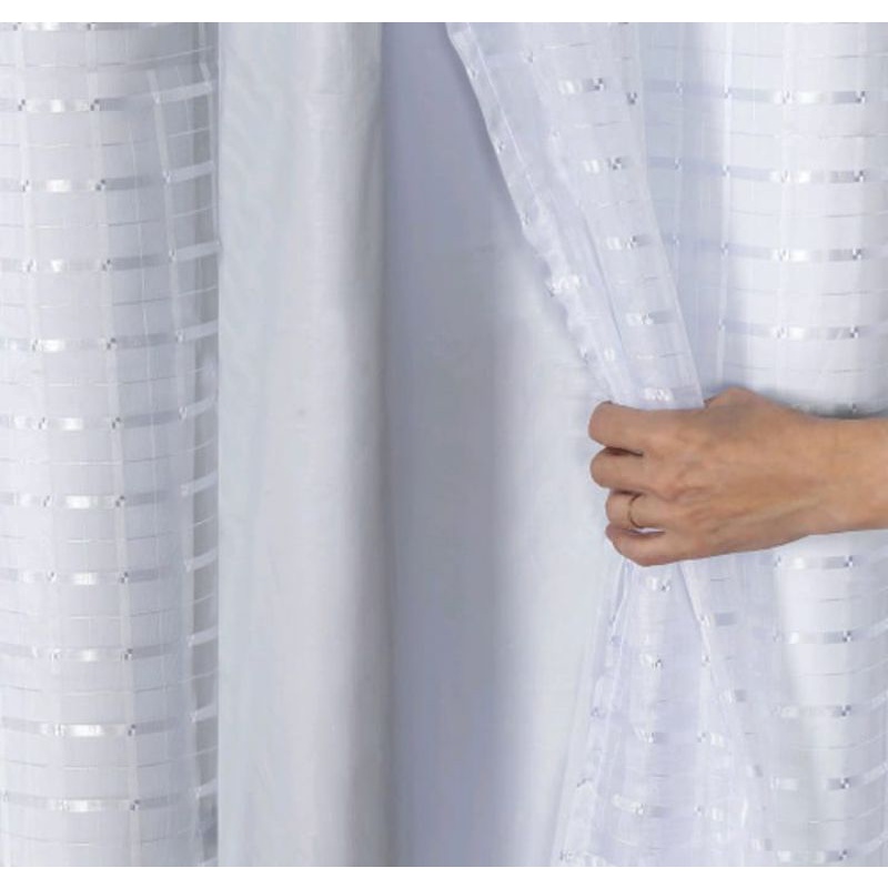 cortina para sala 3,00 x 2,60 com forro de microfibra com voil xadrez e Liso