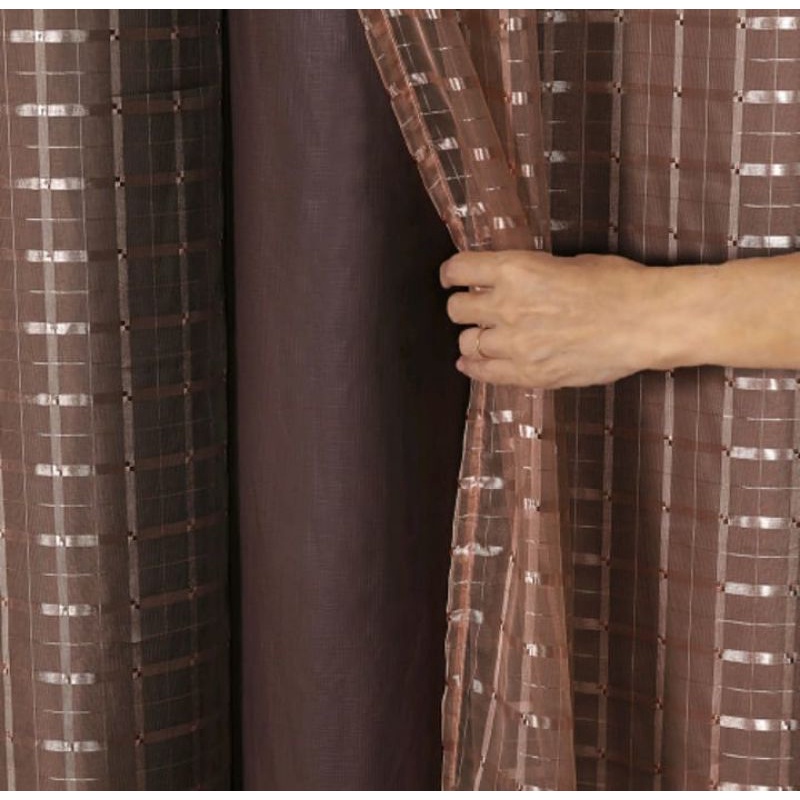 Cortina Para Sala Com Forro De Microfibra Com Voil Xadrez e Liso - Promoção
