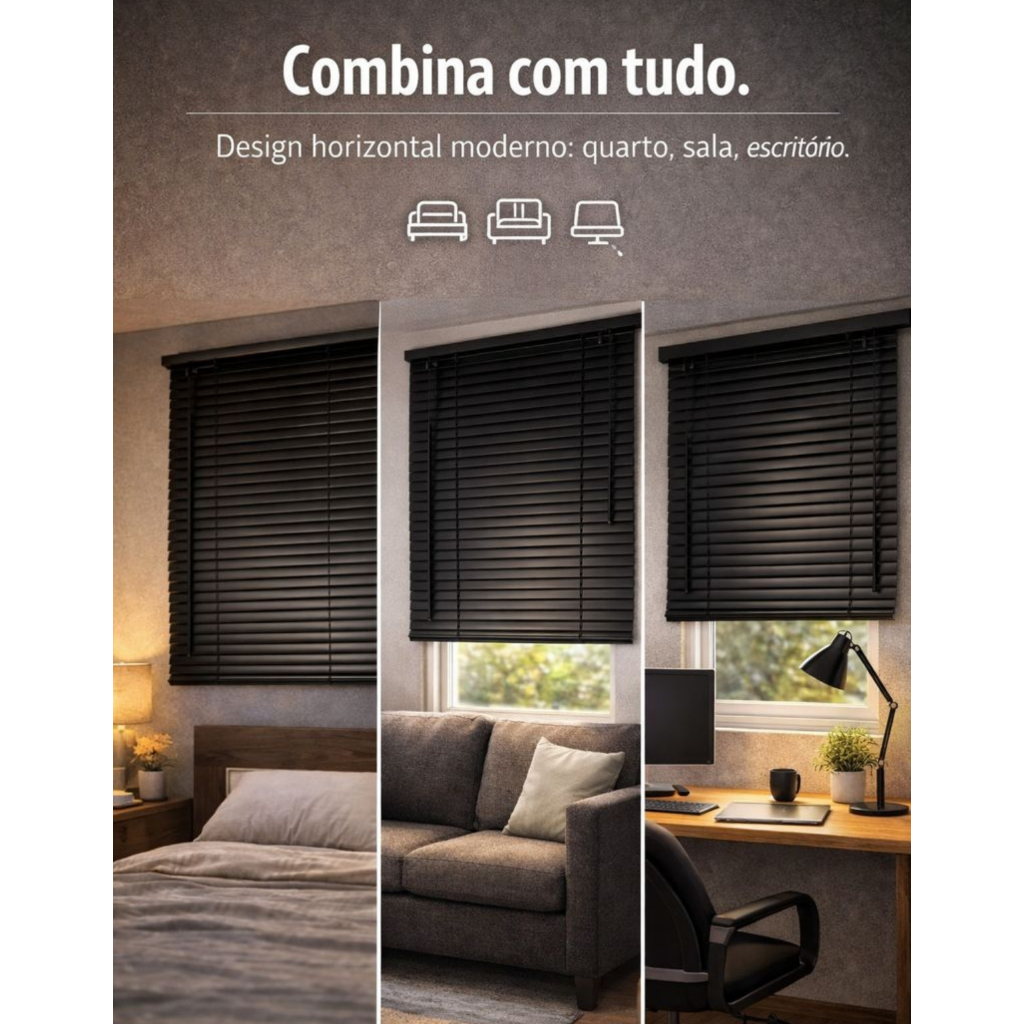 Cortina Persiana Horizontal Pvc Blackout 80x130 Janela Quarto Bloqueia 100% da Luz Solar Escurece Quarto Perfeito