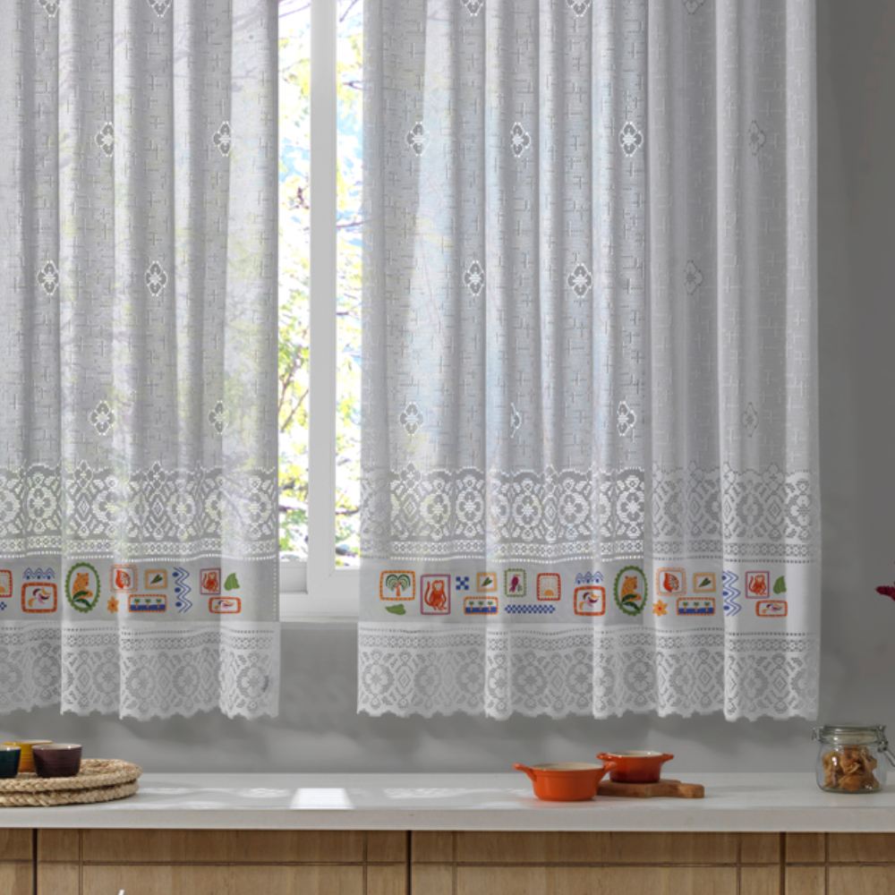 Qual a avaliação de Cortina Renda Cozinha Estampada 2,00 x 1,20 + 20 Tropical Farm Colorida Delicada Casa Decorada?
