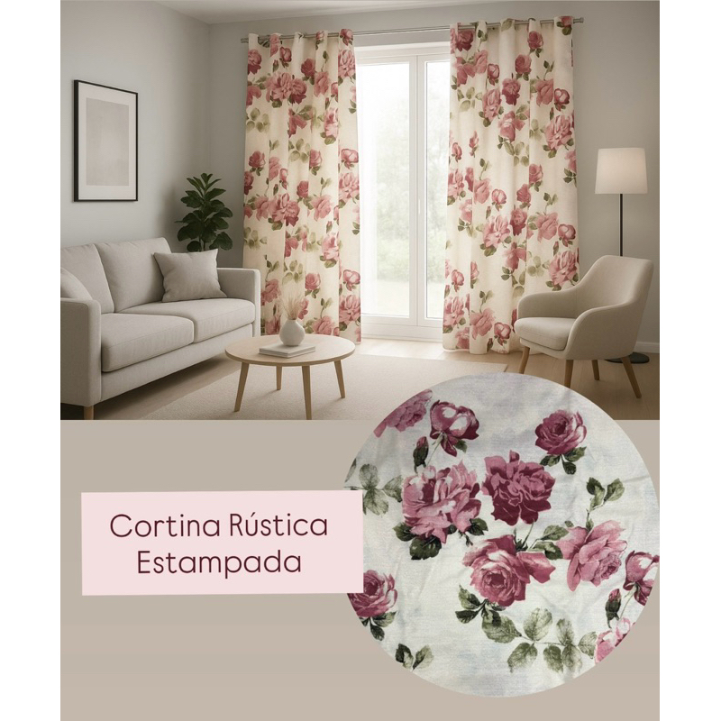 Cortina Rústica Estampada 3,00m x 2,70m Sala Quarto Tecido Grosso Decoração Moderna