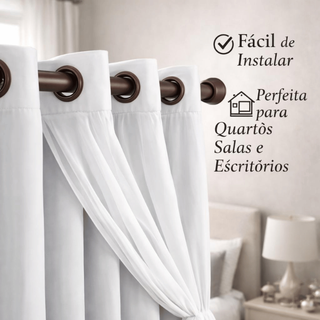 Cortina Sala 3 Metros Com Tecido Voil Luxo Decoração Quarto Para Varão Simples