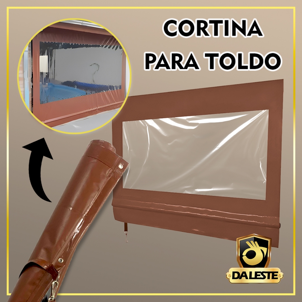 Cortina Toldo Com Visor Lona Impermeável Dupla Face Ilhós Diversos Tamanhos Sacada Portão Quintal