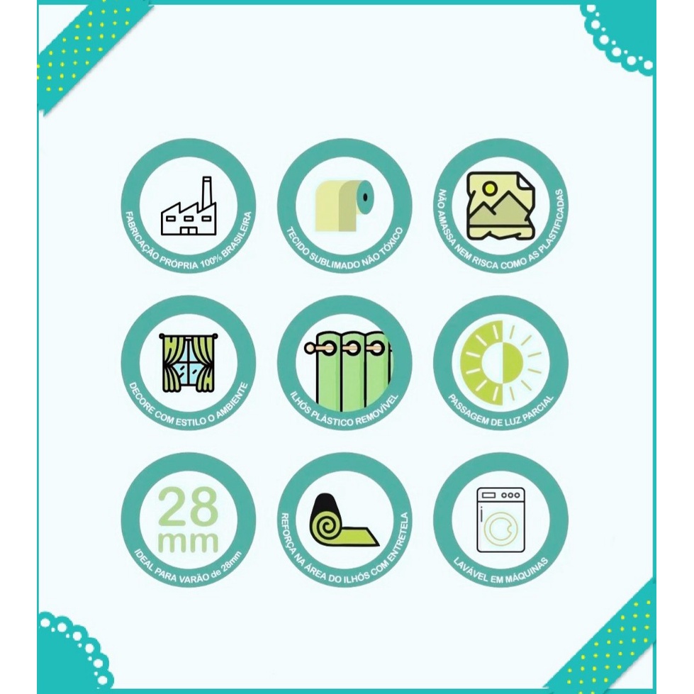 * Despacho imediato!!! * Cortina de tecido 160 fios. * Medida : largura 2,60 metros * Altura 1,70 centímetros. * Composição: 100% Poliéster. * Pilli enxovais tem um conceito de beleza e bem-estar para decoração de interiores, pensando primeiramente em qualidade e segurança para seu lar