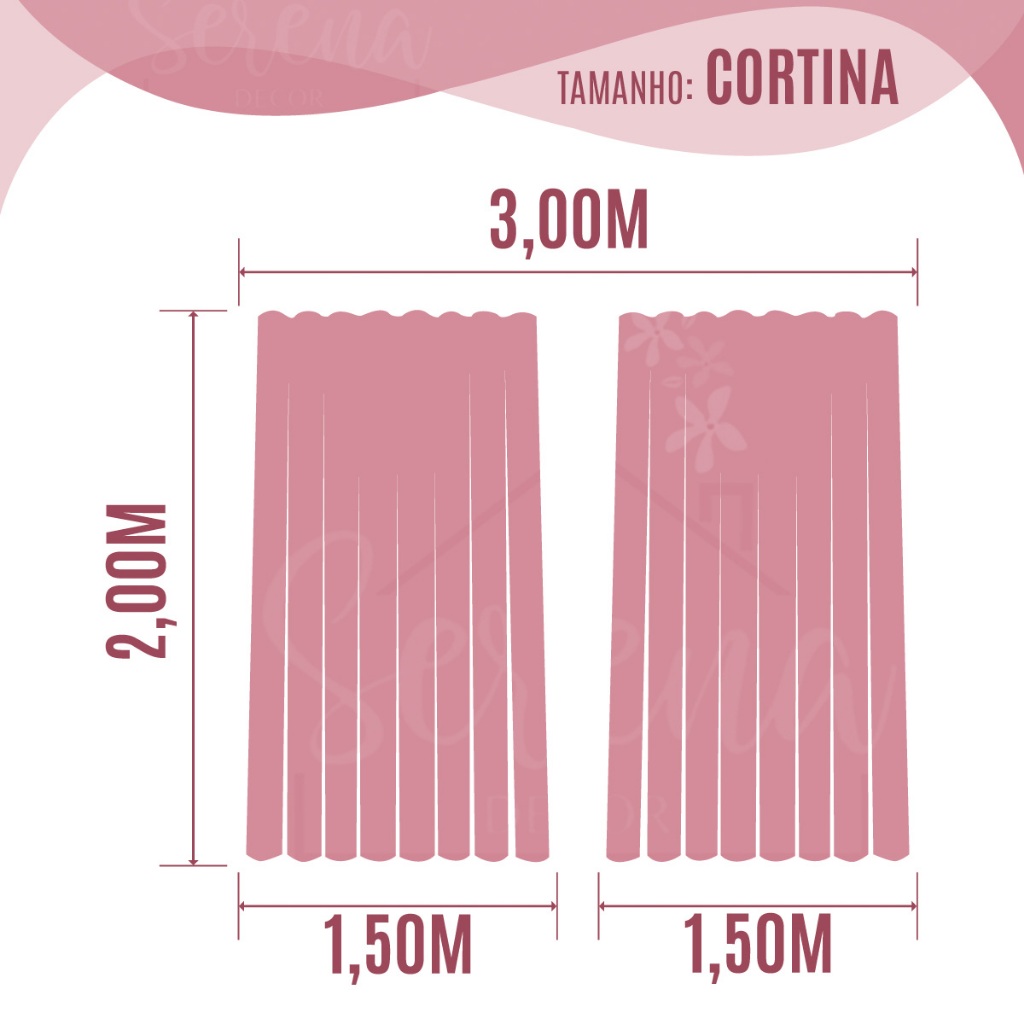 A cortina voil é uma peça versátil e charmosa que se destaca por sua transparência e leveza, conferindo um toque de sofisticação e romantismo aos ambientes. Fabricada em tecidos finos e delicados, o voil permite a passagem suave da luz natural, criando uma atmosfera aconchegante e arejada. Vantagens da cortina voil: Leveza e fluidez: O tecido voil é leve e cai com fluidez, proporcionando um visual elegante e delicado para as janelas. Transparência: Permite a entrada de luz natural, iluminando o ambiente de forma suave e agradável. Versatilidade: Combina com diversos estilos de decoração, desde os mais clássicos até os mais modernos. Facilidade de manutenção: Fácil de lavar e secar, podendo ser passada a ferro em temperatura baixa. Funcionalidade: Além de decorar, as cortinas voil também podem ajudar a controlar a luminosidade e a temperatura do ambiente. A cortina voil já é conhecida no meio das festas, com seu tecido esvoaçante, brilhoso, é perfeita para colocar no fundo da mesa de bolo, ou para fazer a conhecida, cortina de led, por ser um tecido mais fino. Além do ótimo tecido, ela vem com o barrado já pronto para passar no varão ou na estrutura de metal. Atente-se as medidas: MEDIDAS: Ao escolher nossa cortina de voil, adquirirá: 01 cortina de voil de 3,00 m X 2,00 m, separada em duas partes de 1,50 m X 2,00 m. OBSERVAÇÃO: Lotes diferentes de tecido podem variar a tonalidade, mas a qualidade do nosso produto é consistente. • Não acompanha suporte ferro e nem luz de led • Medida da cortina esticada sem franzir (para franzimento comprar maior)