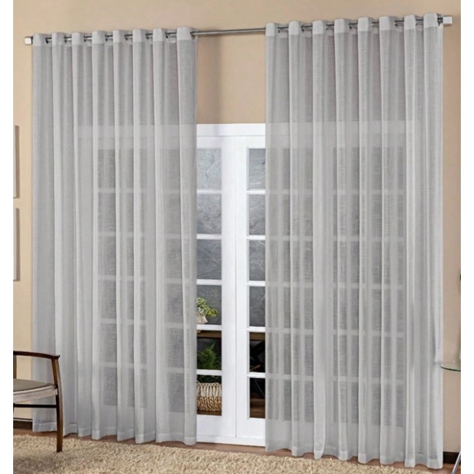 Cortina Voil Gaze de Linho Alto Padrão com Ilhós Cromado Voil Flame