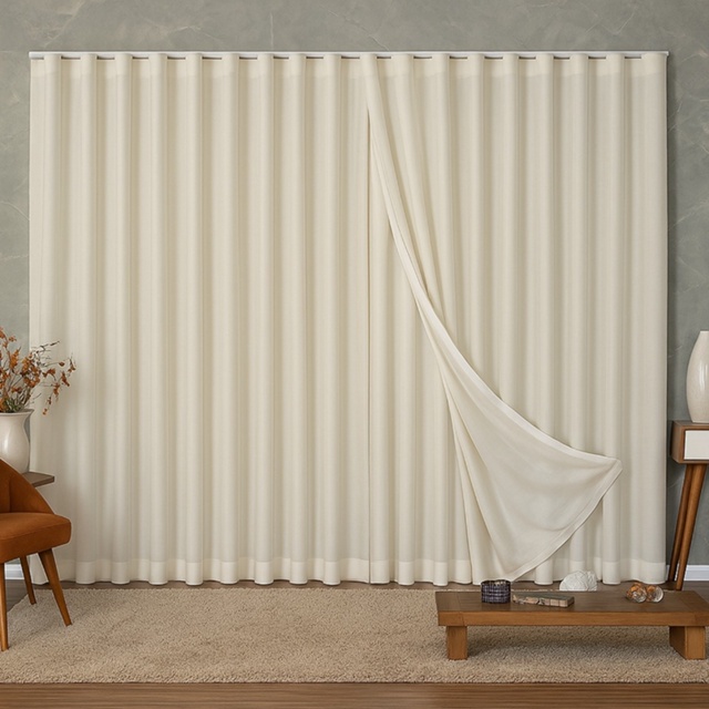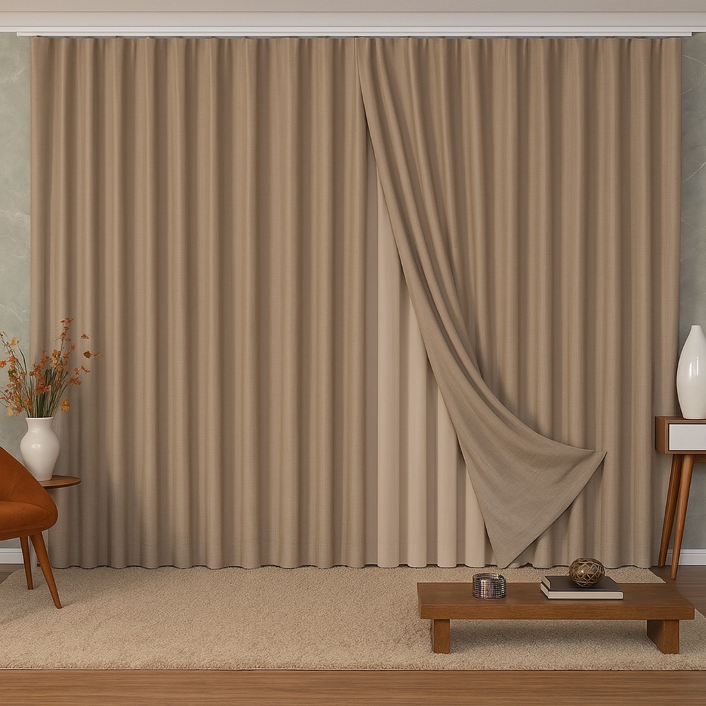 CORTINA VOIL GAZE DE LINHO COM FORRO MICROFIBRA para Trilho Suíço Simples Max Esta cortina em Voil de Linho com forro em microfibra é a perfeita combinação entre sofisticação e funcionalidade. Confeccionada com técnica de alta costura, ela reflete um acabamento impecável, que valoriza qualquer ambiente com sua leveza e elegância. De textura refinada e suave, permite a entrada de luz natural de forma difusa, criando uma atmosfera acolhedora e delicada sem abrir mão da fluidez e beleza do design. Ideal para quem busca um toque de luxo discreto e duradouro, esta cortina é uma verdadeira obra de arte têxtil, capaz de transformar qualquer espaço com um toque de classe. DADOS DA CORTINA: > O tamanho da Altura pode ser selecionado juntamente com a cor no momento da compra (alturas disponíveis neste anúncio: 2,30/2,40/2,50/2,60/2,70/2,80/2,90/3,00 metros) > Tamanho da Largura: 4 metros > Tamanho da Bainha: de 7-10 centímetros > Tamanho Sugerido de Trilho: 2 metros (Trilho Suíço Simples Max) > Dividida em 2 partes > Voil e Forro são costurados juntos > Não possui taxa significativa de vedação > Composição do Tecido: Linho em 100% Poliéster e Tecido Microfibra 100% Poliéster > NÃO é blackout INFORMAÇÕES ADICIONAIS > A largura do anúncio se refere ao tamanho total da cortina esticada > As alturas disponíveis se referem ao tamanho final do produto, não possui descontos de tecido > O tamanho da bainha é padrão, sem opção de escolha. > Lavagem apenas no modo delicado da máquina > As cores podem variar levemente de monitor para monitor (PODE HAVER VARIAÇÃO NOS TONS) > Asseguramos o mesmo tom caso a compra de mais unidades sejam fechadas em um único pedido > NÃO ACOMPANHA TRILHO > GARANTIA DO FABRICANTE DENTRO DOS 7 DIAS DE PEDIDO RECEBIDO "QUAL O TAMANHO IDEAL PARA O MEU ESPAÇO?" > Indicamos optar sempre pelo dobro da largura do seu espaço, para que ela não fique esticada, sem franzimento exemplo: uma parede de 2 metros de largura, necessitará de uma cortina de 4 metros de largura. ATENÇÃO: ALTERAÇÕES NO PEDIDO SÓ SERÃO ATENDIDAS SE FOREM SOLICITADAS EM ATÉ 3O MINUTOS APÓS A COMPRA, APÓS ISSO O PEDIDO É ENCAMINHADO À CONFECÇÃO E >>NÃO<< É POSSÍVEL SER ALTERADO! Em caso de dúvidas, entre em contato conosco pelo chat.
