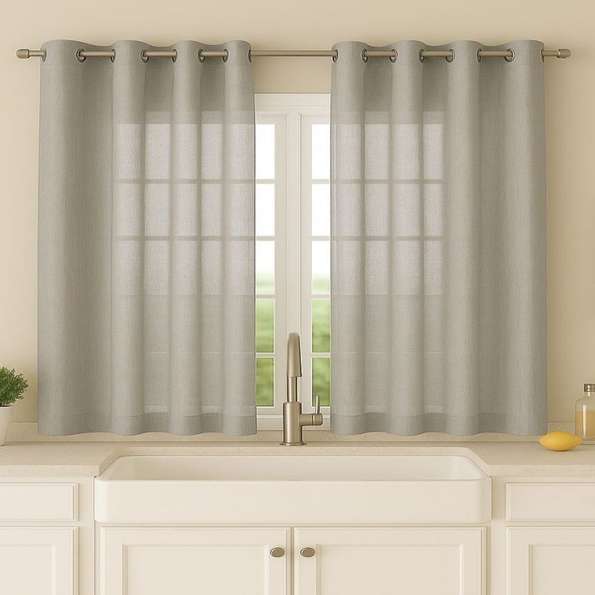 Cortina Voil Linho Flame 3,00x1,20 Para cozinha Com Ilhós