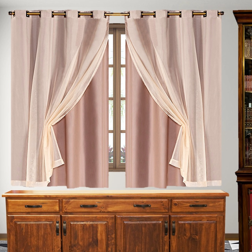 Cortinas blackout para Quarto com voil vários Tamanhos tecido xadrez ou liso cortina