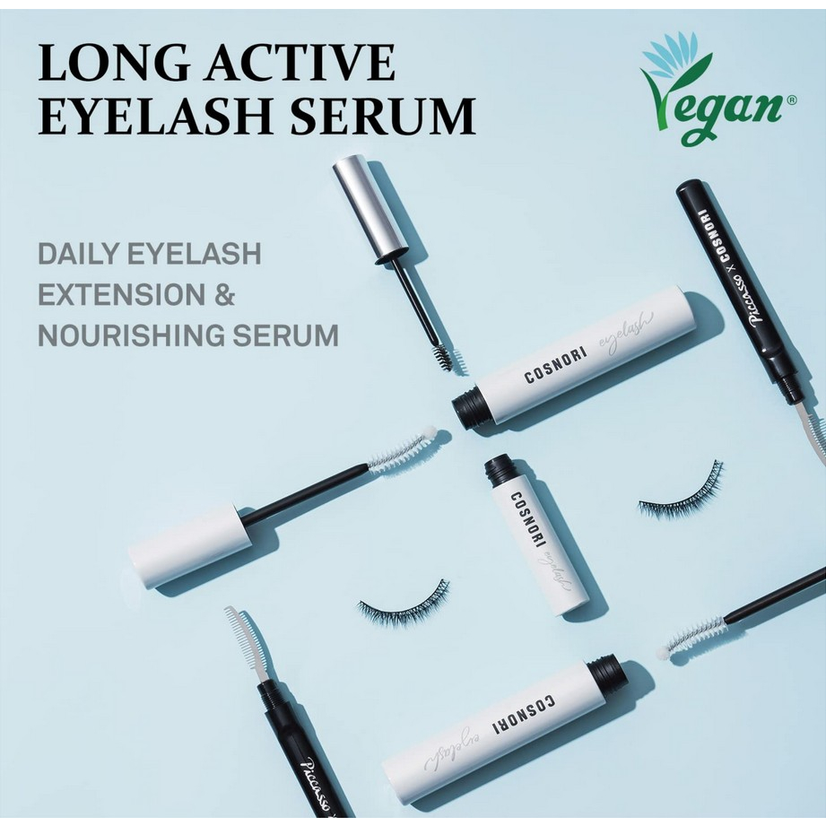COSNORI Long Active Eyelash Serum 9g - LASH AND BROW GROWTH SERUM: Care your eyes naturally with Cosnori Eyelash & Brow Growth Serum. It strengthens damaged eyelashes caused by extensions or makeup. An ideal eye care serum for daily use that shows visible results in 3-4 weeks - ENRICHED WITH PEPTIDE SERUM: Crafted using a skin-friendly raw material peptide that adds healthy gloss to the brow’s hair and lashes increases elasticity and strength - NATURAL INGREDIENTS: It contains soft, jelly-style hyaluronic acid and Centella Asiatica extracts that provides long-lasting moisture and nourishment to grow healthier and faster especially during the growth period - SPECIALLY-DESIGNED DUAL BRUSH: It comes with an easy to use, smart-design C-curl brush and ball-tip lash applicator that can deliver nutrients more effectively between the eyelashes and the hair roots - OIL-FREE, WATER-BASED: Our hypoallergenic, oil-free eyebrow and lash serum keeps the eyes free from soreness as it maintains the pH level, the same as the tears. Its water-based, light texture absorbs quickly and can be used after fake eyelash extension without worrying 🇰🇷SHIP FROM KOREA🇰🇷