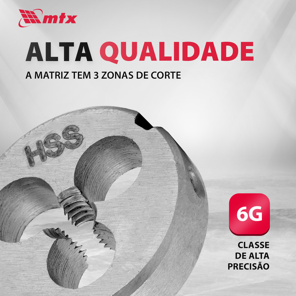 O Cossinete Manual de Aço Rápido M4 x 0,7 mm é uma ferramenta essencial para a criação e restauração de roscas métricas externas em peças metálicas, combinando precisão de alto nível com facilidade de uso. Esta ferramenta é projetada para atender tanto às necessidades de trabalhos de serralharia quanto às de montagens feitas em casa, graças ao seu design intuitivo e corpo sólido que assegura uma conexão firme com a peça de trabalho, resultando em roscas de excelente qualidade. Principais Vantagens do Cossinete Manual de Aço Rápido M4 x 0,7 mm: Durabilidade Excepcional: Fabricado a partir de aço rápido (HSS), o cossinete manual destaca-se pela sua notável resistência ao desgaste e capacidade de manter altas velocidades de corte. Este material de alta qualidade assegura a longevidade da ferramenta, mesmo sob uso intenso. Alta Dureza: A dureza de 60 HRC do cossinete cumpre integralmente com os padrões estabelecidos pelo GOST, garantindo que a ferramenta possa enfrentar os trabalhos mais desafiadores de corte de rosca sem perder eficácia. Eficiência na Remoção de Cavacos: Projetado com zonas de corte profundas, o cossinete manual facilita uma remoção eficiente de cavacos, permitindo um corte mais rápido e limpo. Isso não só melhora a qualidade da rosca, como também reduz significativamente o tempo de trabalho. Versatilidade Aprimorada: Com cones de entrada em ambos os lados, este cossinete manual é uma ferramenta altamente versátil, adequada para uma vasta gama de aplicações de corte de rosca, tanto para a restauração de roscas danificadas quanto para a criação de novas. Identificação Rápida: A clara marcação do tamanho no cossinete manual assegura uma fácil identificação, permitindo que o usuário selecione rapidamente a ferramenta correta para o trabalho em questão, otimizando o processo de trabalho. Conformidade com Padrões Europeus: O grau de precisão 6G deste cossinete manual confirma sua aderência aos rigorosos padrões europeus de qualidade, assegurando roscas precisas e de alta qualidade que satisfazem as exigências técnicas mais rigorosas. O Cossinete Manual de Aço Rápido M4 x 0,7 mm representa uma solução de excelência para todos que procuram eficiência, precisão e durabilidade em ferramentas de corte de rosca. Ideal tanto para profissionais quanto para entusiastas do faça-você-mesmo, este cossinete é projetado para transformar tarefas complexas de corte de rosca em processos simples e gerenciáveis, garantindo resultados de alta qualidade que atendem e superam as expectativas.