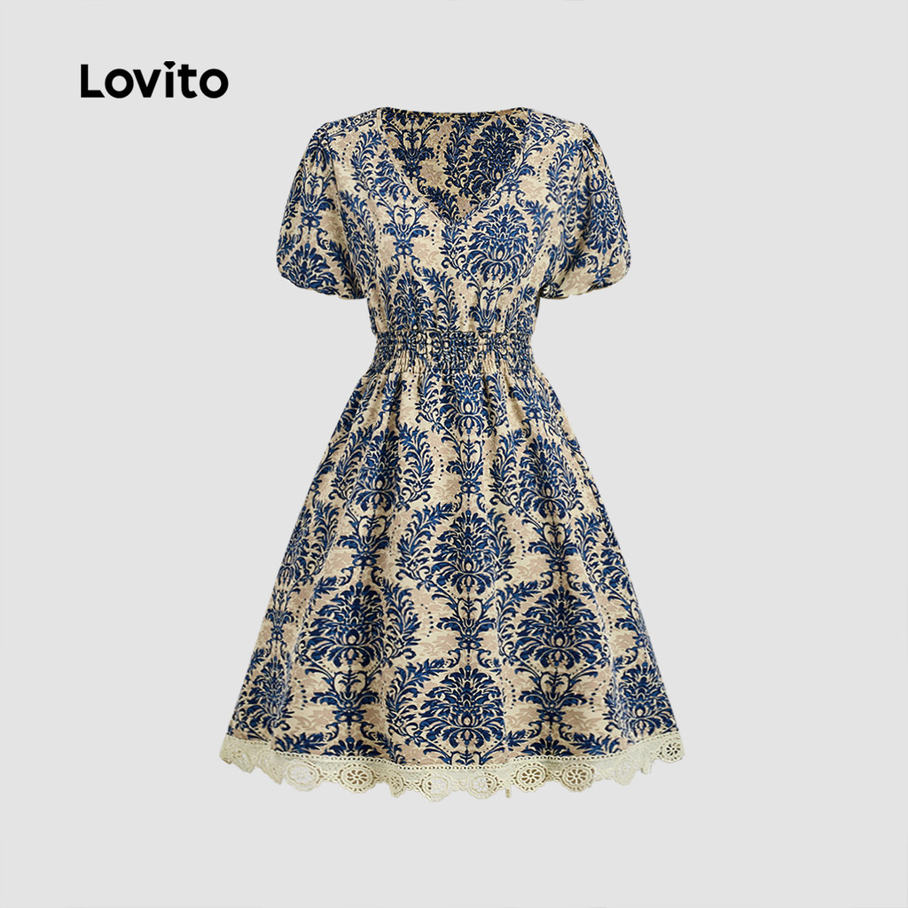 Costura de renda Paisley cintura estreita A-Hem Casual verão vestido feminino-DRB150P2D321