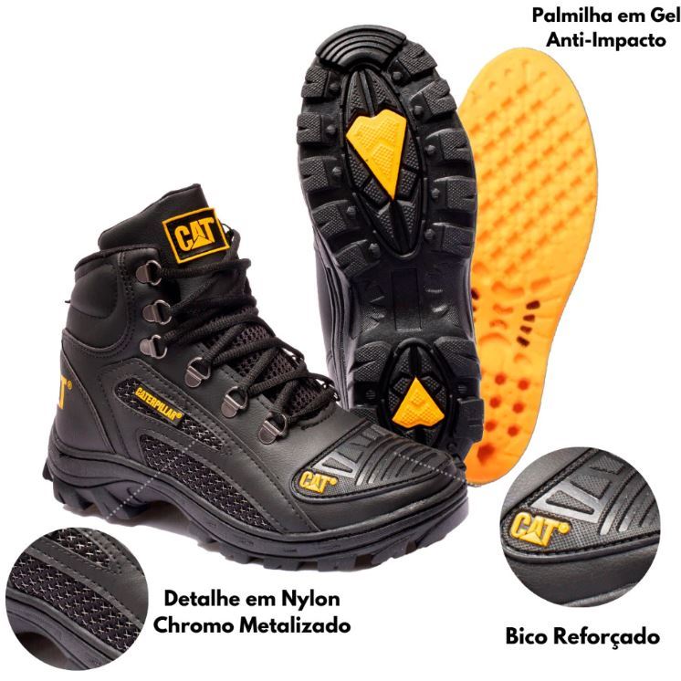 Coturno Bota Caterpillar Impermeável Couro Legitimo CAT Original + Palmilha em Gel