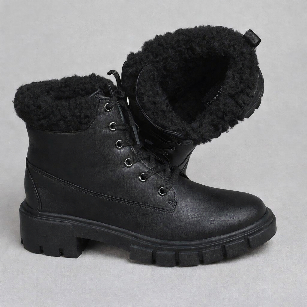 Coturno Bota Feminino Forrada em Lã Cano Curto Pelo Tratorado Inverno Quente Confortável