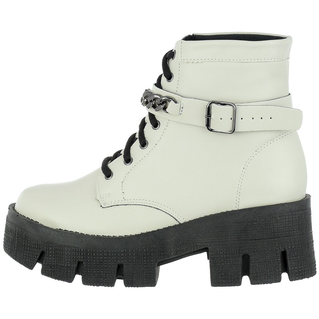 Coturno Feminino Bota Corrente Confortável Macia Plataforma Preto Off White Salto Alto Tratorado Novo
