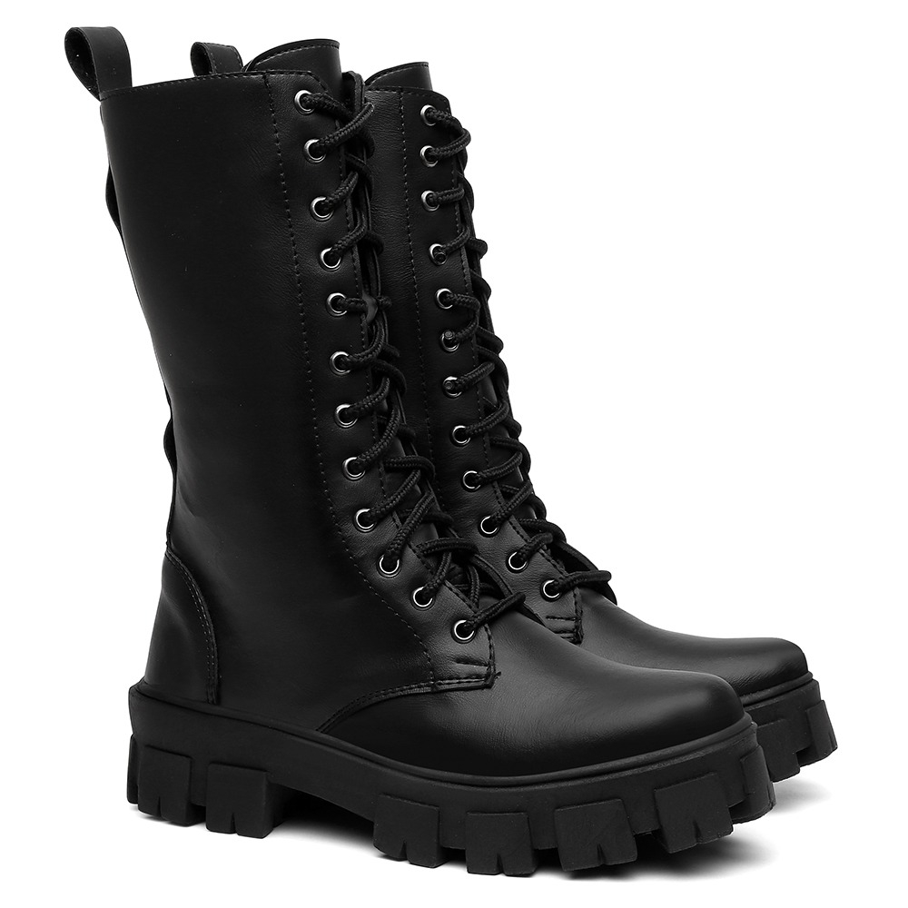 Coturno Feminino Cano Alto Zíper Tratorado Lisa