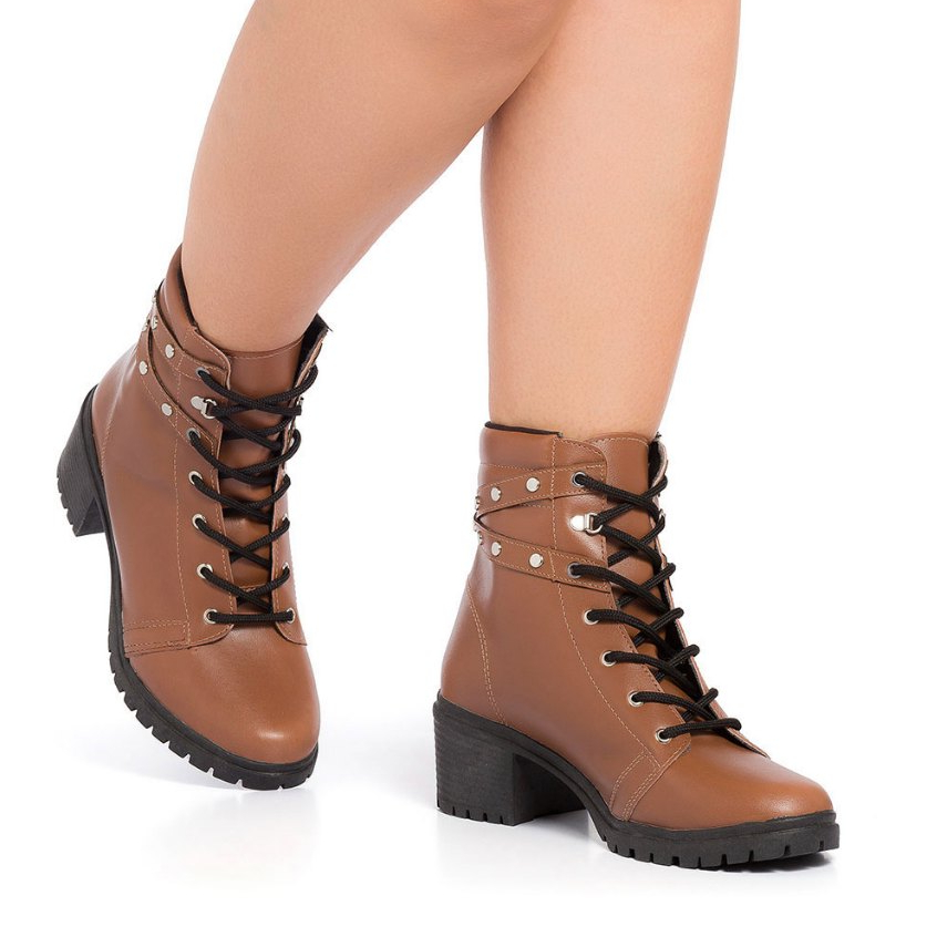 Coturno Feminino Stessy Shoes Bota Cano Curto Tachas Salto Grosso Tratorado Blogueira Original
