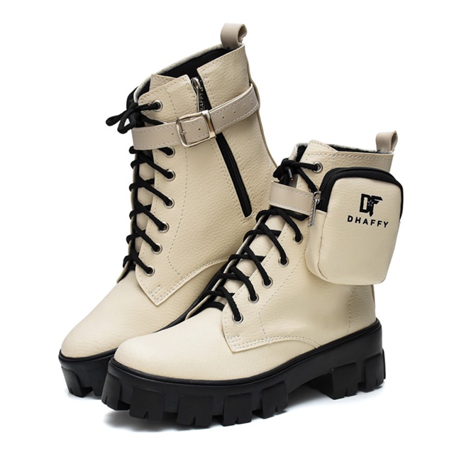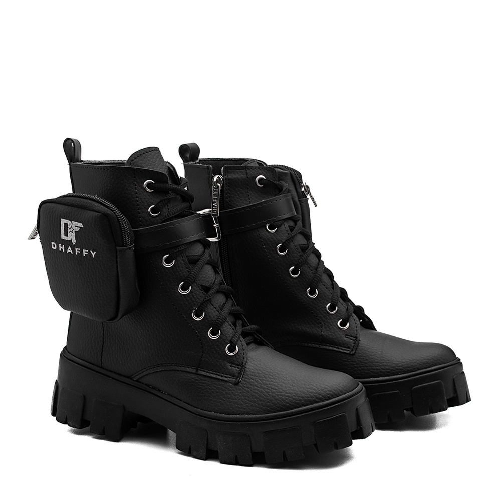 Um Coturno que possui 3 formas de uso * Com a Bag * Somente a Fivela *Liso Detalhes do produto: Modelo de Bota: Coturno Cadarço ajustável Fechamento na lateral em zíper Solado: Borracha - Antiderrapante - Tratorado Detalhes da fivela ajustável com a bolsinha do lado removível Estilo da Peça: Liso Ocasião: Casual Material: Floater Material Interno: Têxtil Espumado Palmilha: EVA macio Altura do Cano (cm): 16 cm Altura do Cano: Cano Médio Altura do Salto: Baixo Plataforma Altura do Salto (cm): 5 cm Marca: Dhaffy Bags and Shoes Qualquer dúvida estamos à disposição =D