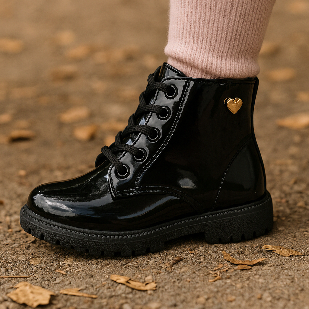 COTURNO INFANTIL MENINA VERNIZ BOTA CANO CURTO