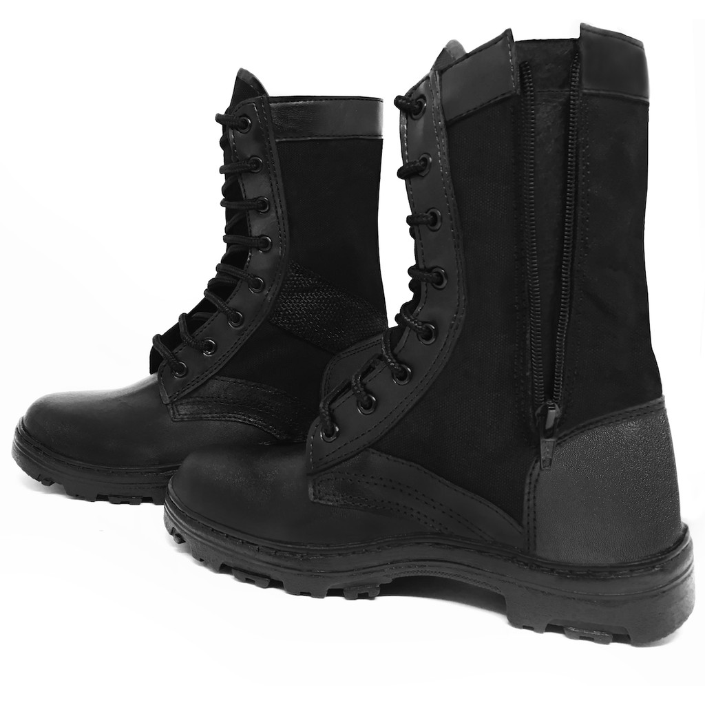 Coturno Militar Tático Masculino Exército Confortável Preta com Zíper Lateral Airsoft Couro Legítimo Extra Leve