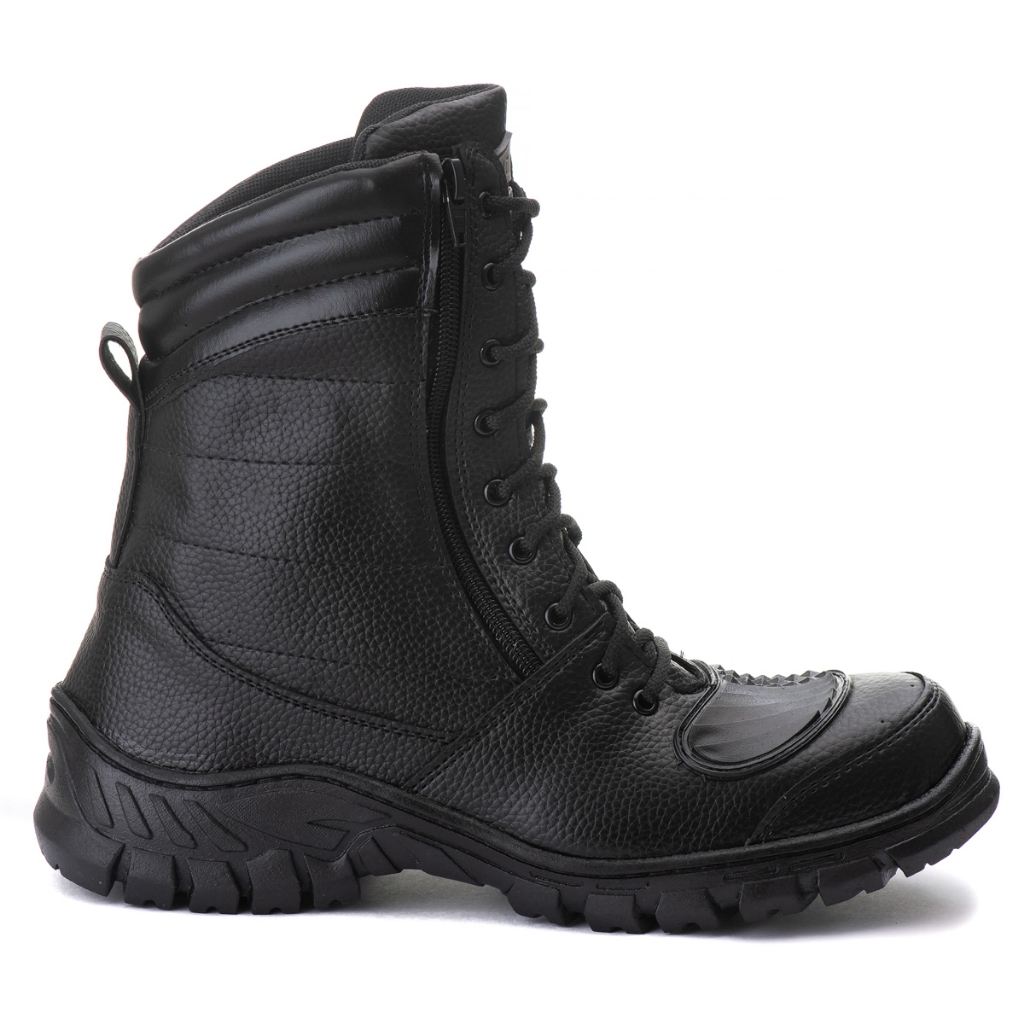 Coturno Militar Unissex Tatico Com Zíper Couro Ecológico Cano Alto